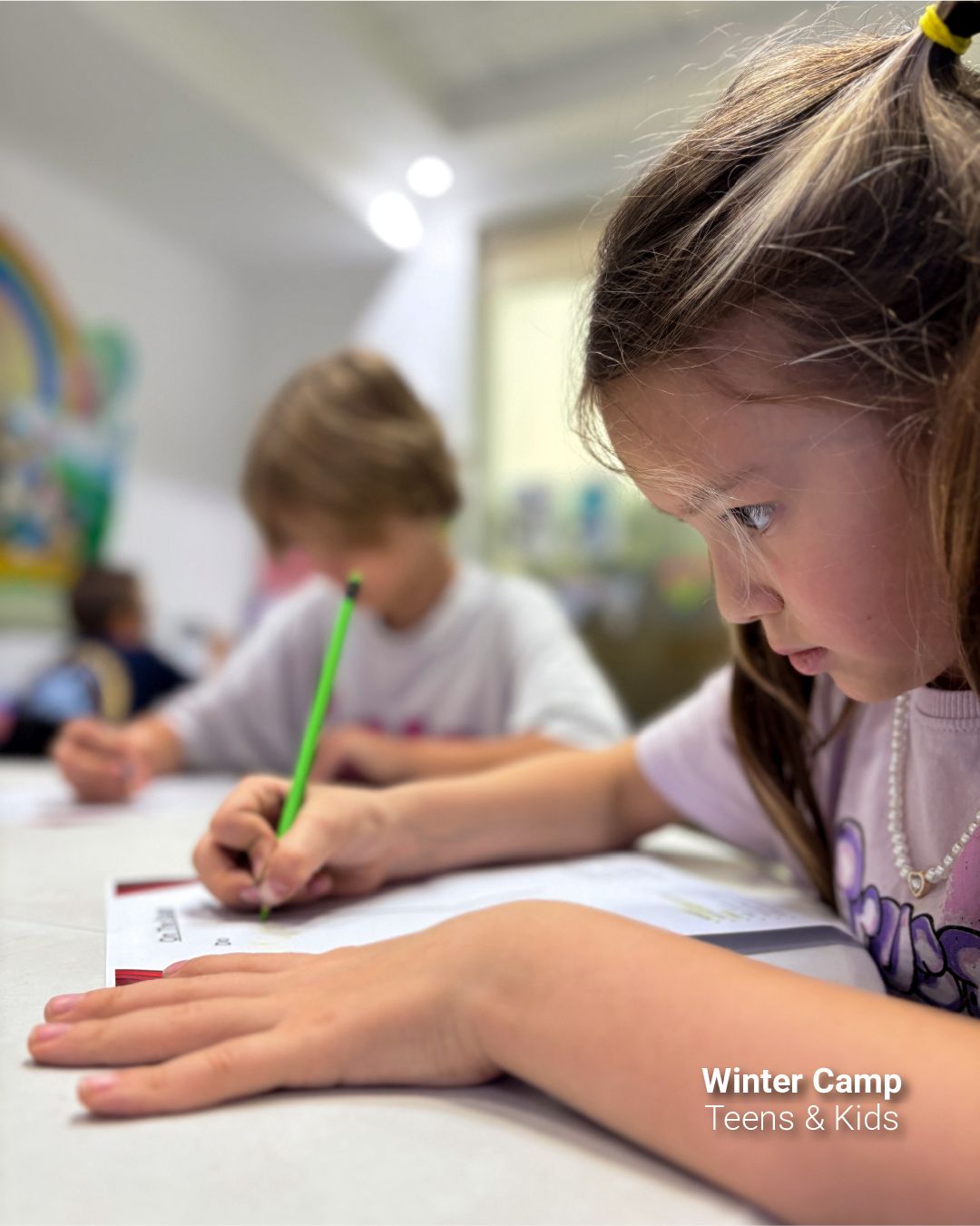 Designed for younger learners. English is learned through play, creativity, and imagination. Children build confidence while using English in age-appropriate activities.